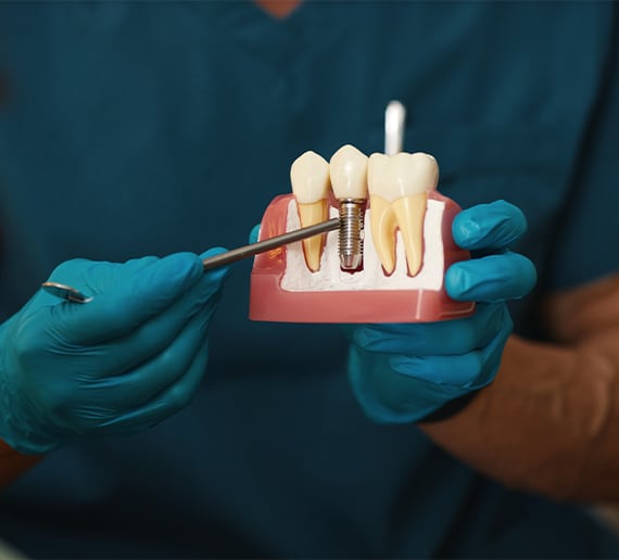 A dental implant is surgically implanted into your jawbone. As it heals, the jawbone grows around the implant and strengthens to keep it in place. Once your mouth has sufficiently healed, your dentist will secure a custom crown on the implant.
